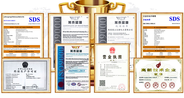 A Xi'an Deli Biochemical Industry Co., Ltd. egy csúcstechnológiás vállalkozás, amelyre szakosodott a ciklodextrinek és származékaik kutatás-fejlesztése, gyártása és értékesítése. Stabil minőséggel és megbízható szolgáltatással szállítunk gyógyszerészeti segédanyagokat vásárlóink számára világszerte.